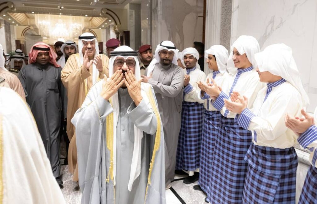 The ceremony was also attended by HH the Crown Prince Sheikh Sabah Al-Khaled Al-Hamad Al-Sabah, HH the Prime Minister Sheikh Ahmad Al-Abdullah Al-Ahmad Al-Sabah and senior state officials. The ceremony began with the national anthem, followed by the operetta, during which groups of male and female students from various educational stages at education ministry schools presented artistic performances expressing love, loyalty and belonging to the homeland.