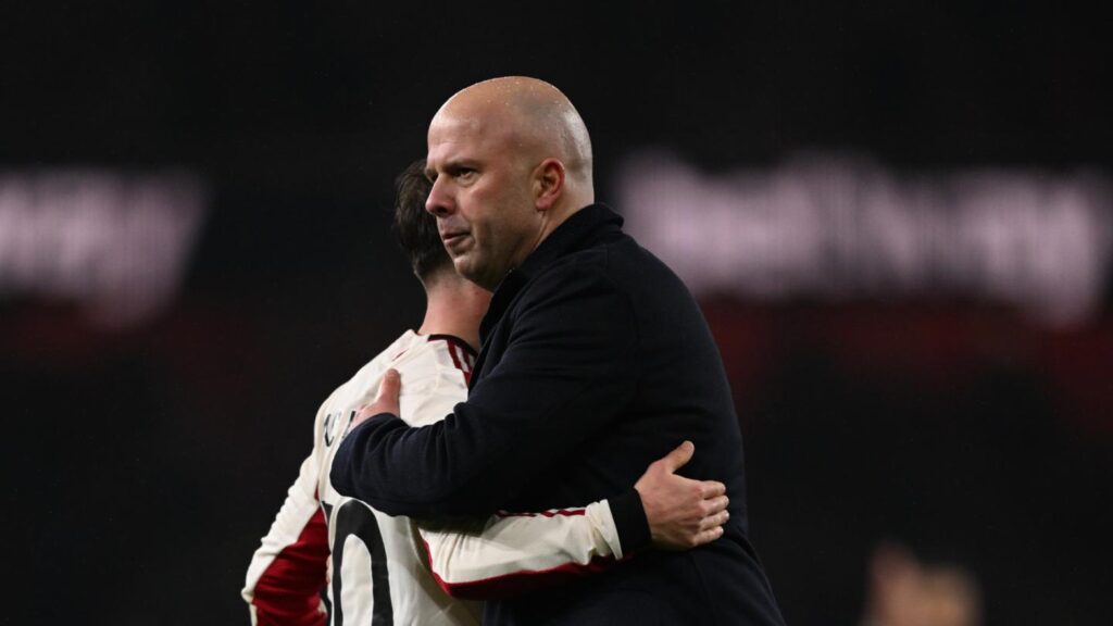 No, like I said, I think the way we pressed their two centre-backs and their No.6 was better in the second half than in the first half. That’s why we could regain ball possession faster in the second half than in the first half. They couldn’t come as far around our box than as in the first half, but maybe the main thing was we had the ball for long spells and then when they kicked it away we could win it back and start playing again. But credit to Arsenal as well, the way they defended their box – I think we had five, six or seven shots, mainly from Dominik Szoboszlai and he has a good shot, I can tell you. And one shot I thought might have gone in but then of course Gabriel [Magalhaes] blocked it with his body forward and his legs. They are good in so many things, including box defending, that it is so difficult to get a result against them, but we managed to do so.