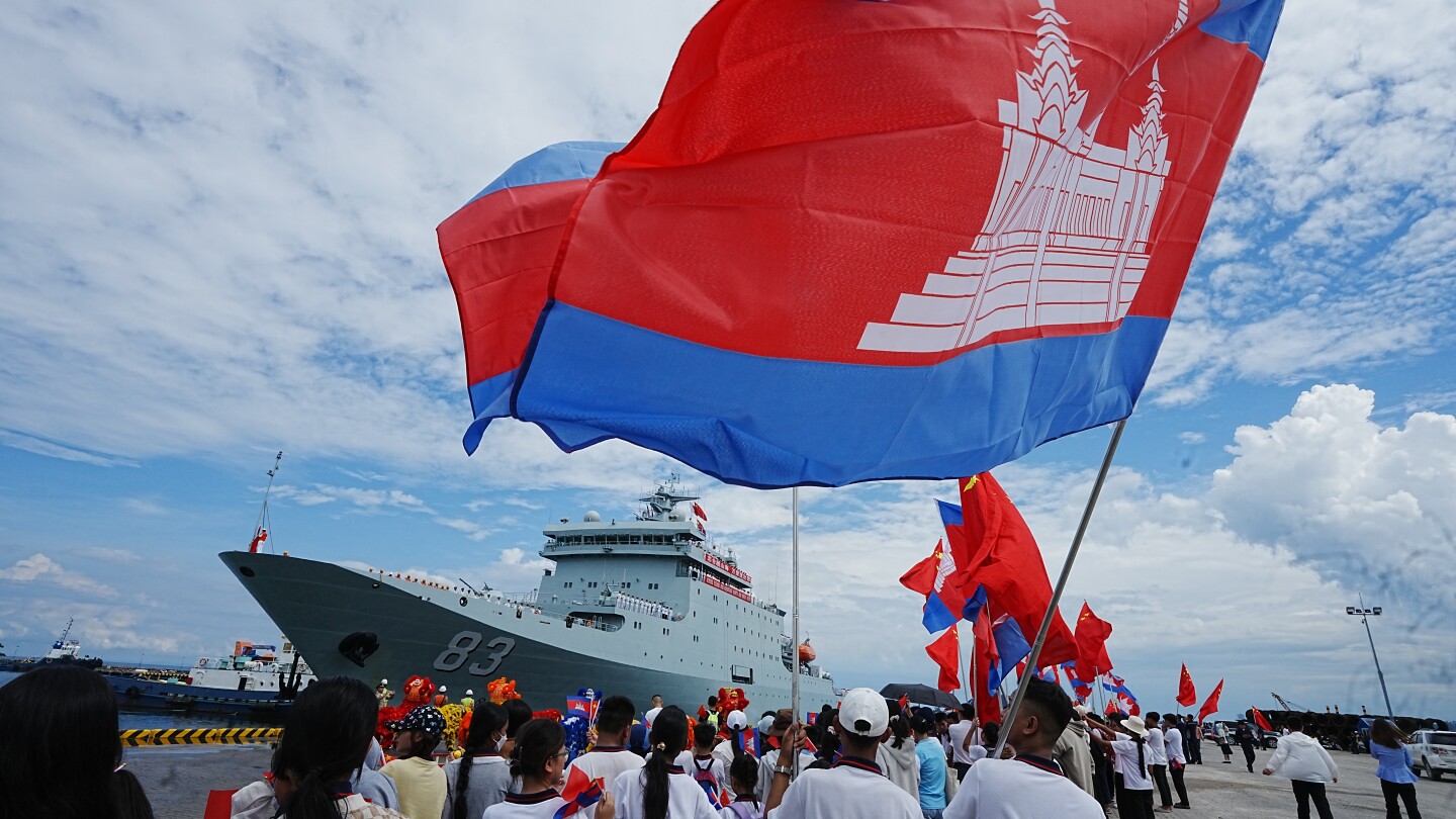 In what may be a gesture to easing political concerns, the ships docked at the commercial port rather than the nearby Ream Naval Base, which some Western military analysts fear is a de facto Chinese base.