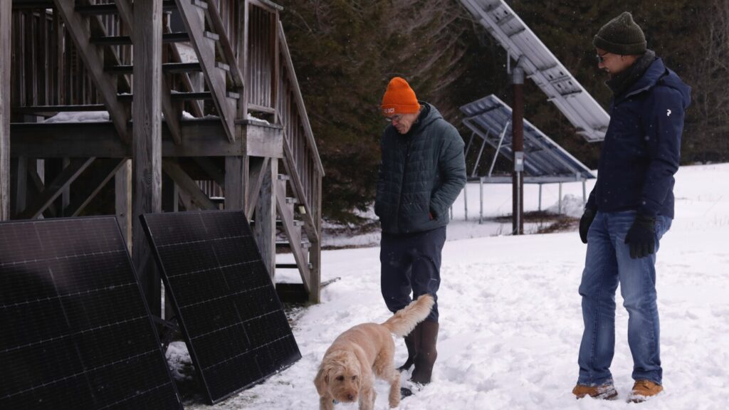 As his dog, Birke, stood watch, McKibben, who refers to his home nestled in the Green Mountains of Vermont as a “museum of solar technology” got his new panels up and running in about 10 minutes. This type of panel from the California-based firm Bright Saver is often referred to as plug-in solar. Though it’s not yet widely available in the U.S., McKibben pointed to the style’s popularity in Europe and Australia.