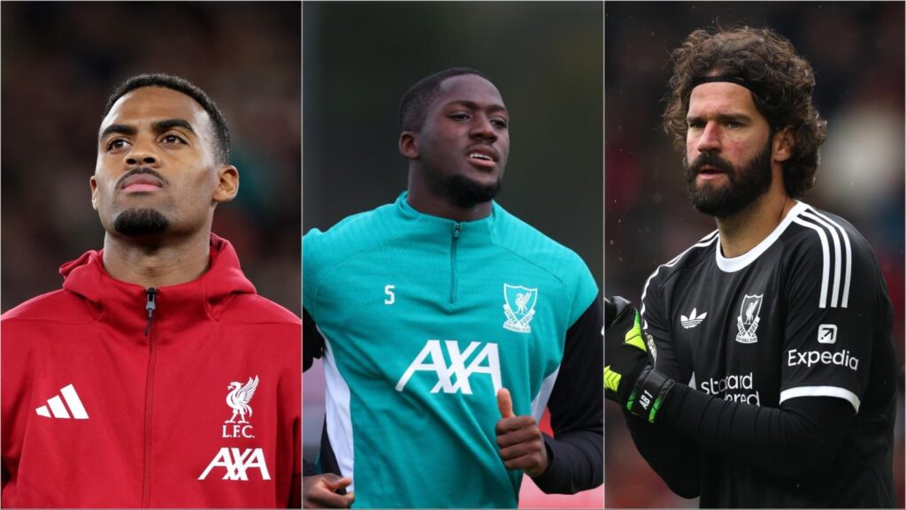Alisson sustained an injury during the Reds’ Champions League tie at Galatasaray before the international break and Slot added: “He is not training with us, so he is out.”