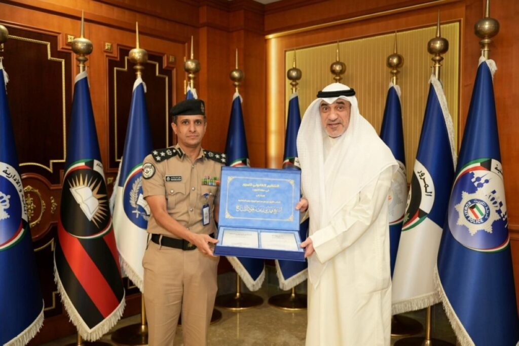 In a press statement, the Ministry of Interior said Assistant Director General for Education and Coordination Affairs at the General Traffic Department, Brigadier General Khaled Al-Adwani, presented the book in recognition of Sheikh Fahad’s efforts to support and develop the traffic work system and strengthen the legal and regulatory framework in the sector. The statement added that the edition, prepared by retired Major General Salem Al-Ajmi and Brigadier General Khaled Al-Adwani, serves as an updated legal reference for the Traffic Law, its executive regulations, and complementary ministerial decisions.