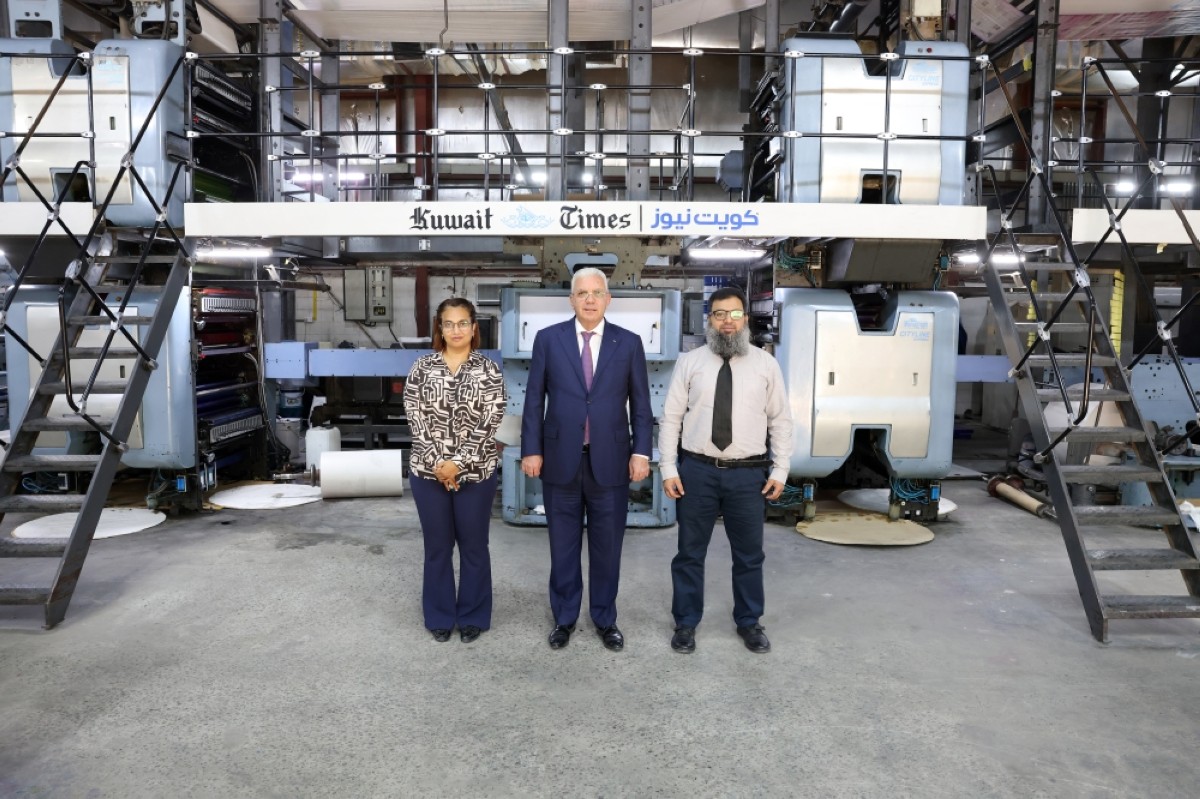 Palestinian Ambassador Rami Tahboub with Jana AlNaqeeb, CSR & PR Manager of Kuwait Times at the printing house.