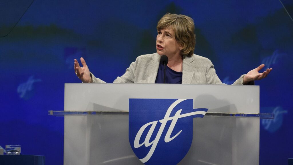 American Federation of Teachers President Randi Weingarten speaks to the audience at the annual convention of the American Federation of Teachers Friday, July 13, 2018 at the David L. Lawrence Convention Center in Pittsburgh, Pennsylvania.