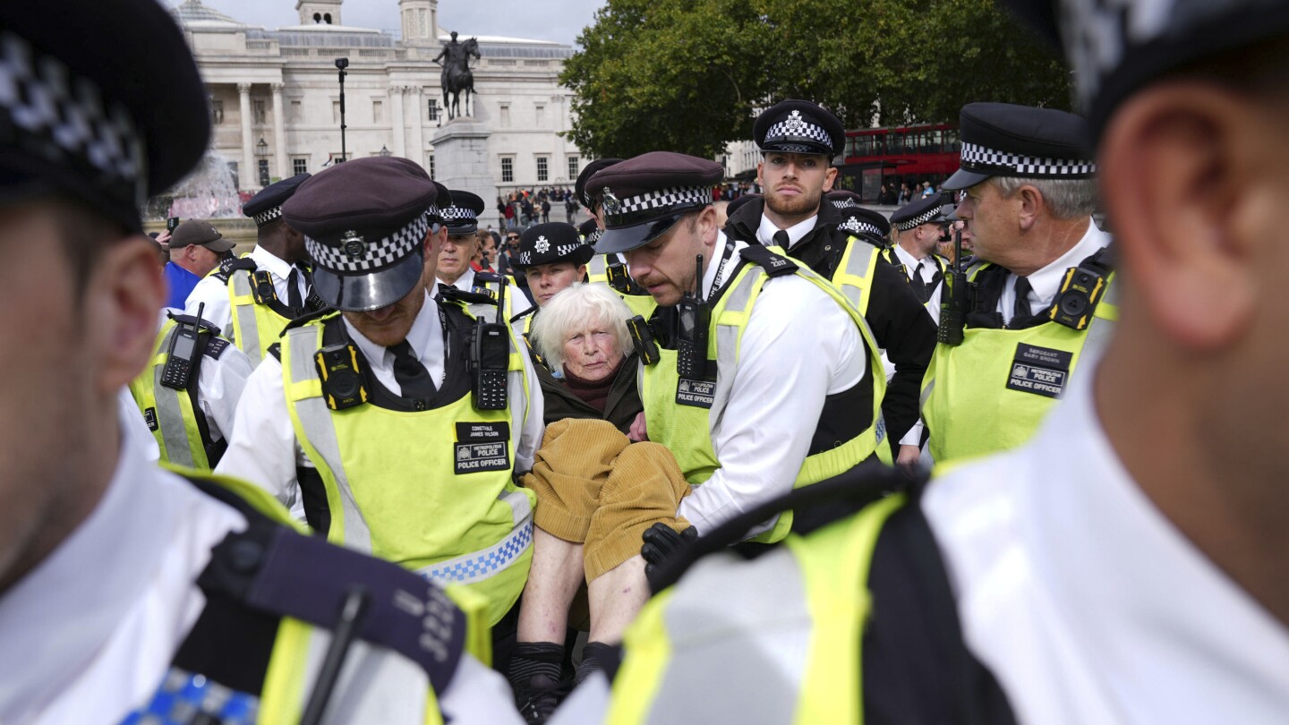 LONDON (AP) — British police will get stronger powers to restrict repeated protests, the government said Sunday, after almost 500 people were arrested at a demonstration in support of a banned pro-Palestinian group.